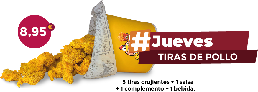 5 tiras +1 salsas + 1 complemento + 1 bebida.